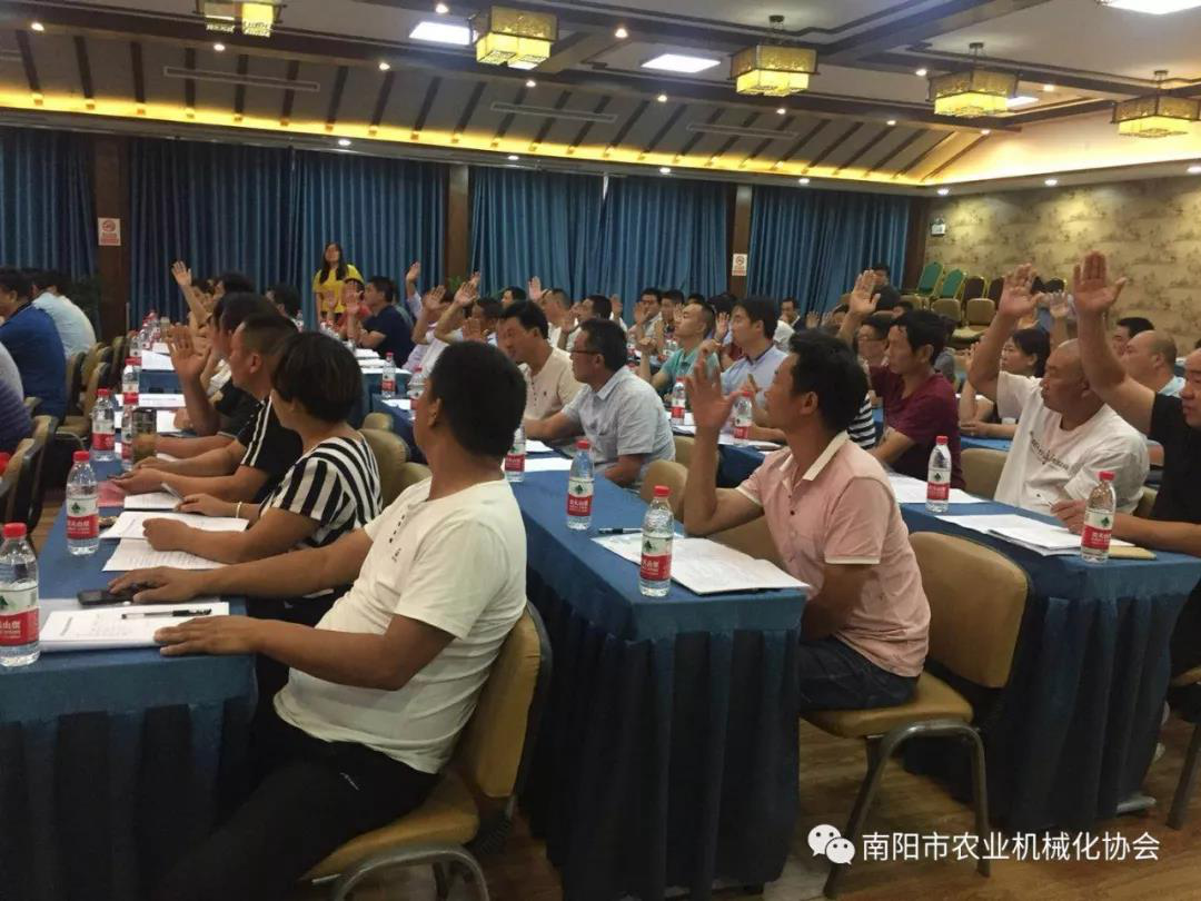 7月3日,南陽市農(nóng)業(yè)機械化協(xié)會成立大會在南陽市鷗凱印象酒店3樓會議室召開,南陽市農(nóng)業(yè)機械化管理局黨組書記、局長劉勤同志出席會議并做重要講話。選舉通過田云鎖(原南陽市農(nóng)業(yè)機械公司總經(jīng)理)同志當選為會長,亞澳南陽農(nóng)機有限責(zé)任公司總經(jīng)理史炳哲、南陽奇豐機械有限責(zé)任公司董事長趙順奇、鎮(zhèn)平縣糧豐農(nóng)機農(nóng)民專業(yè)合作社理事長薛云濤當選為副會長。