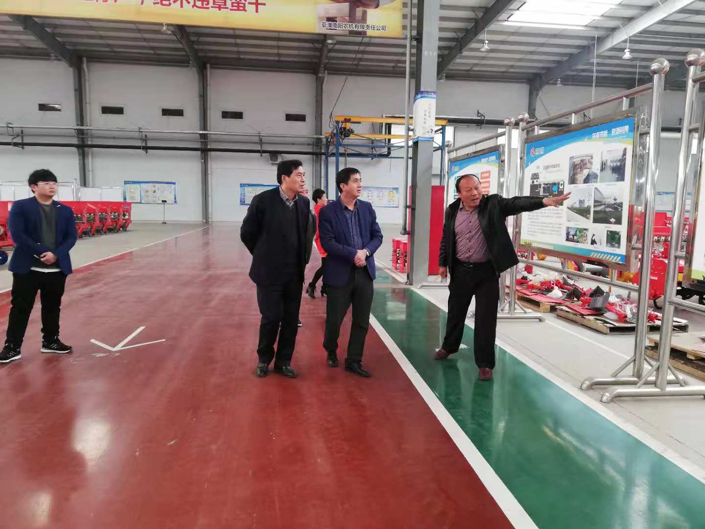 20181128日上午10點,市工商聯(lián)副主席李軍在唐河縣工商聯(lián)主席方明和副主席黃佩英的陪同下,來到亞澳南陽農(nóng)機(jī)公司調(diào)研指導(dǎo),亞澳公司郭總陪同。
